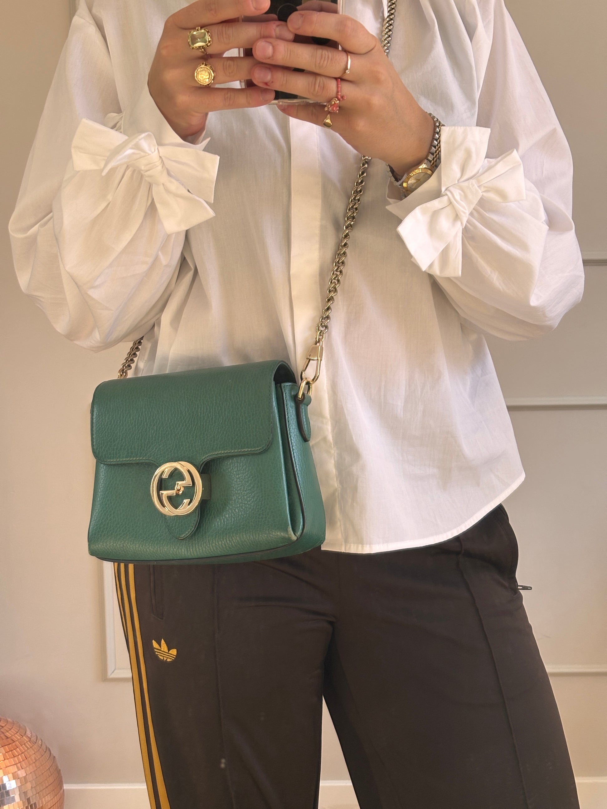 Het tijdloze ontwerp en de kenmerkende Interlocking G sluiting maken de tas een stijlvolle eyecatcher, ideaal voor zowel dagelijks gebruik als avondgelegenheden.